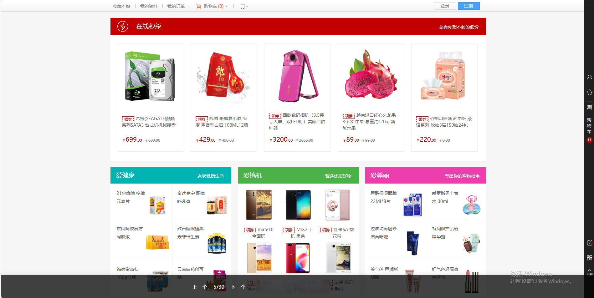 商品卡显示“30天最低价”(如原价¥399,现价¥269 ↓33%);